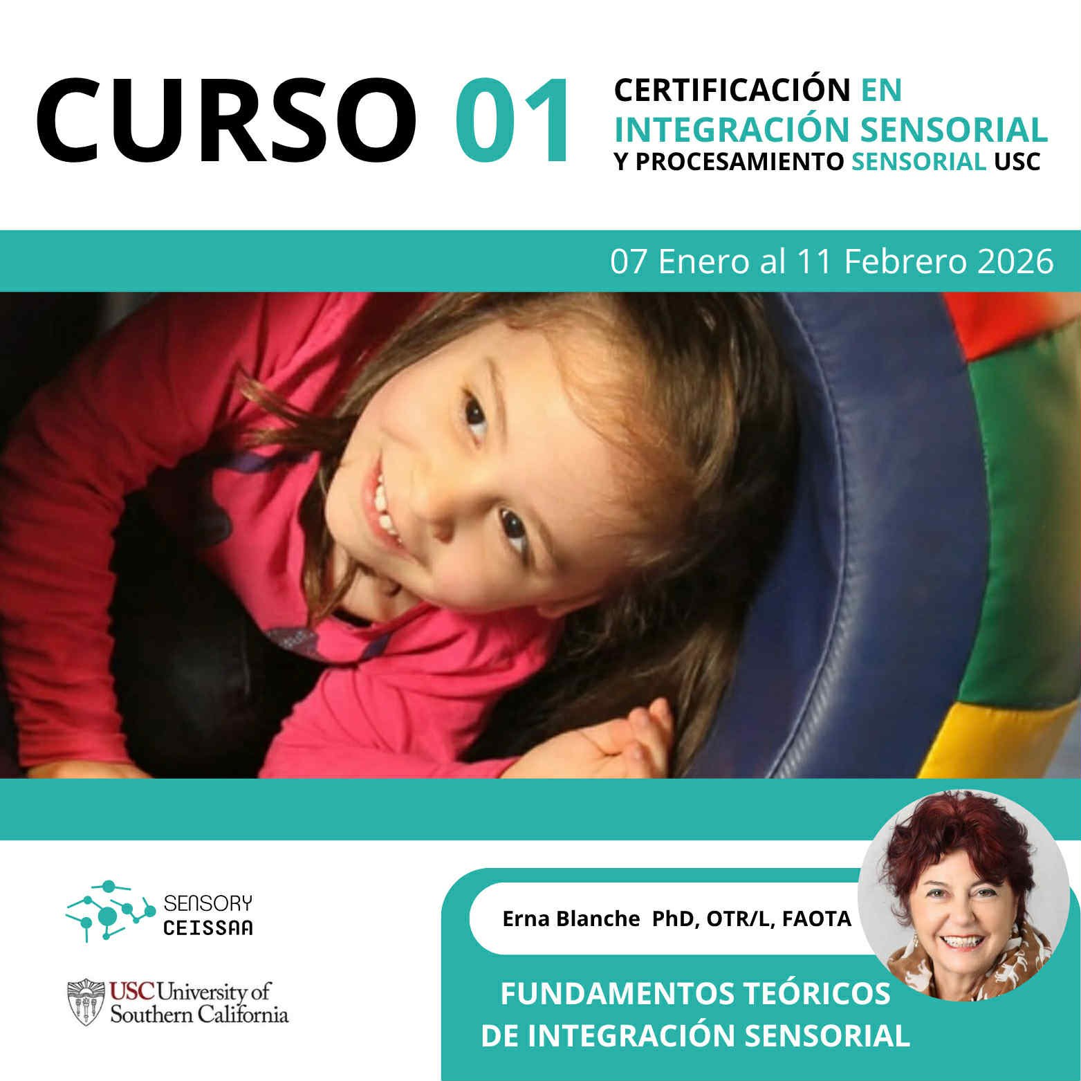 Este curso abarca los principios neuroconductuales básicos que sustentan la teorÃa de la integración sensorial. Se examinan las contribuciones especÃficas de cada sistema sensorial en el contexto de las actividades y ocupaciones cotidianas. Se analizan los patrones tÃpicos de disfunción de la integración sensorial y sus implicaciones fundamentales para la intervención.